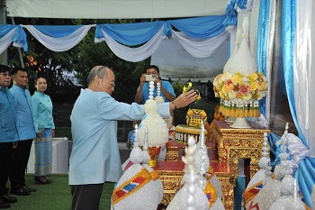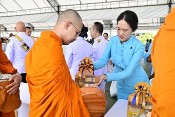 On 12 August 2025, at 7:00 a.m., Mrs. Bhakamol Rattaseri, Member and Deputy Treasurer of the Chaipattana Foundation, together with the staff of the Chaipattana Foundation, participated in the merit-making and alms-giving ceremony dedicated to Her Majesty Queen Sirikit, The Queen Mother, at Sanam Luang. On this occasion, Mr. Thursak Boonyakachon, Deputy Secretary-General of the Chaipattana Foundation, together with the staff of the Chaipattana Foundation, presented a flower vase before Her Majesty’s portrait and signed the book of blessings at Sahathai Samakhom Pavilion, Grand Palace.