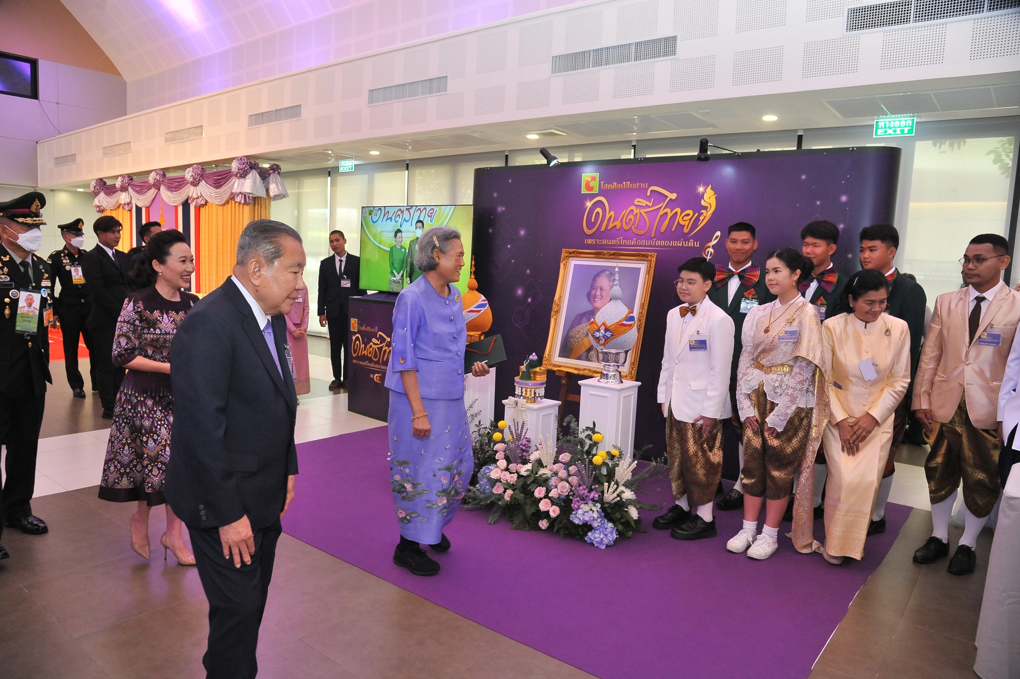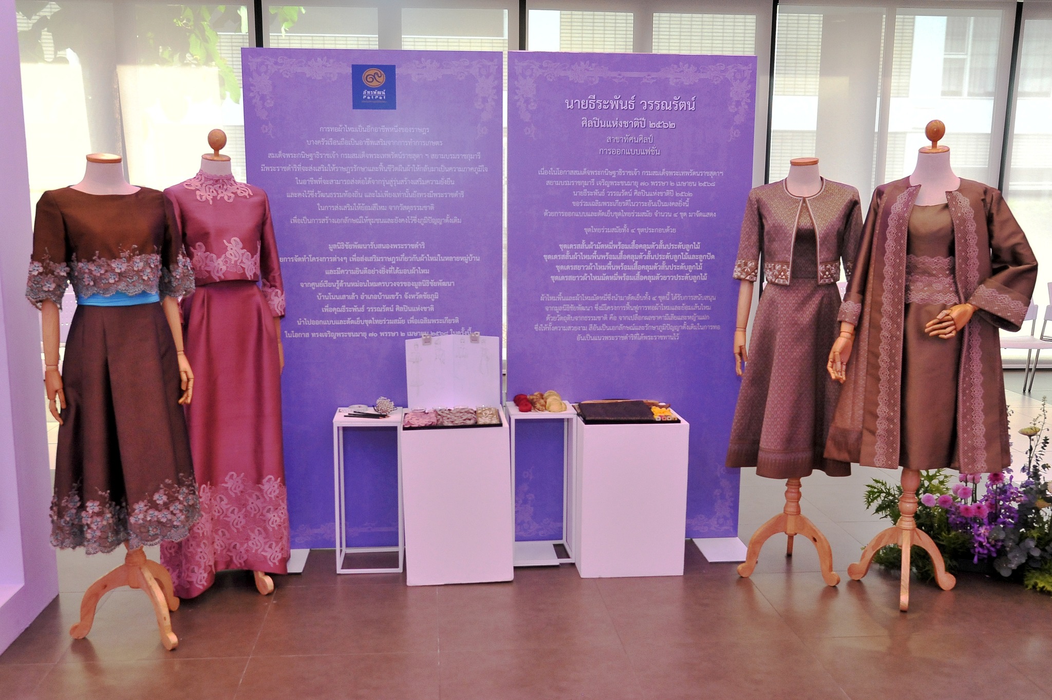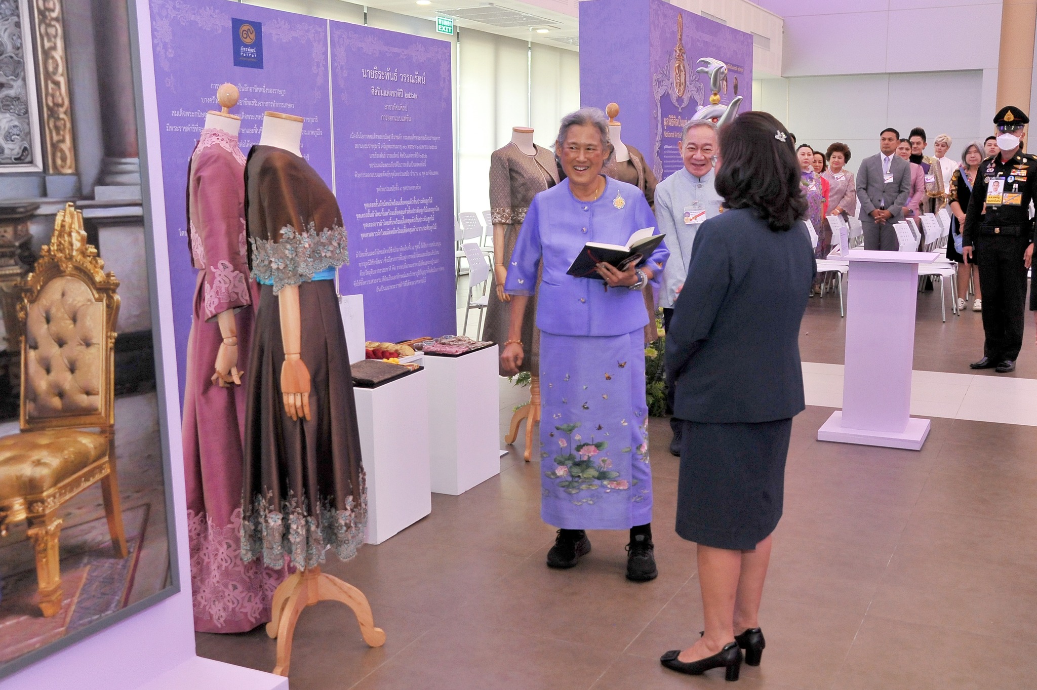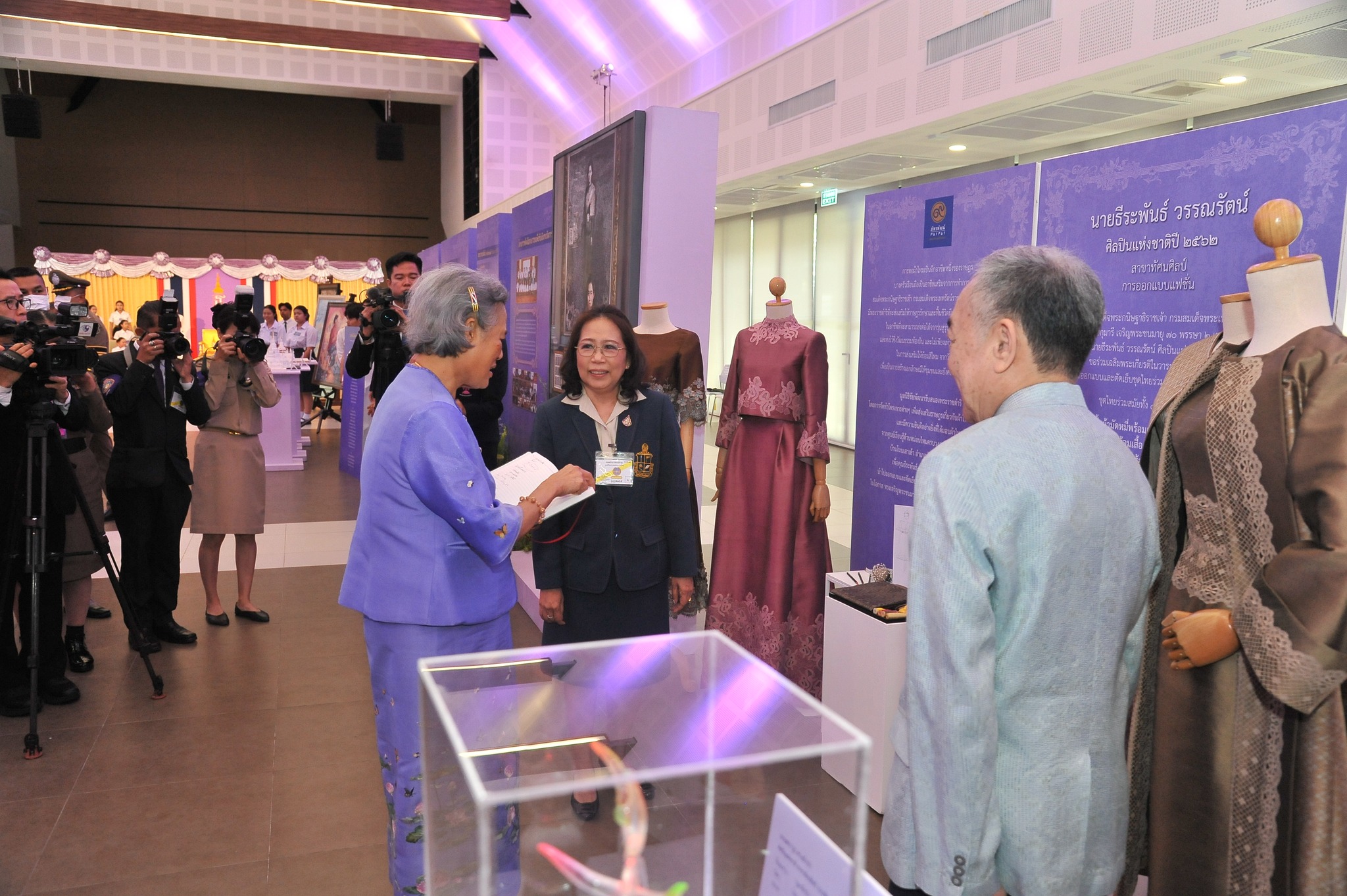 ในการนี้ ได้ทอดพระเนตรนิทรรศการเทิดพระเกียรติ สมเด็จพระกนิษฐาธิราชเจ้า กรมสมเด็จพระเทพรัตนราชสุดา ฯ สยามบรมราชกุมารี โดยส่วนหนึ่งของนิทรรศการจัดแสดงผลงาน “ชุดไทยร่วมสมัย” ออกแบบและตัดเย็บโดย นายธีระพันธ์ วรรณรัตน์ ศิลปินแห่งชาติ ซึ่งมูลนิธิชัยพัฒนาได้สนับสนุนผ้าไหมจากโครงการศูนย์เรียนรู้ด้านหม่อนไหมครบวงจรของมูลนิธิชัยพัฒนา บ้านโนนเสาเล้า อำเภอบ้านเขว้า จังหวัดชัยภูมิ ที่จัดตั้งขึ้นตามแนวพระราชดำริของสมเด็จพระกนิษฐาธิราชเจ้า กรมสมเด็จพระเทพรัตนราชสุดา ฯ สยามบรมราชกุมารี เพื่อส่งเสริมให้ราษฎรอนุรักษ์และฟื้นชีวิตผืนผ้าให้กลับมาเป็นความภาคภูมิใจในอาชีพการทอผ้าไหม รวมทั้งส่งเสริมการใช้สีธรรมชาติในการย้อมสีไหมเพื่อรักษาเอกลักษณ์ชุมชน