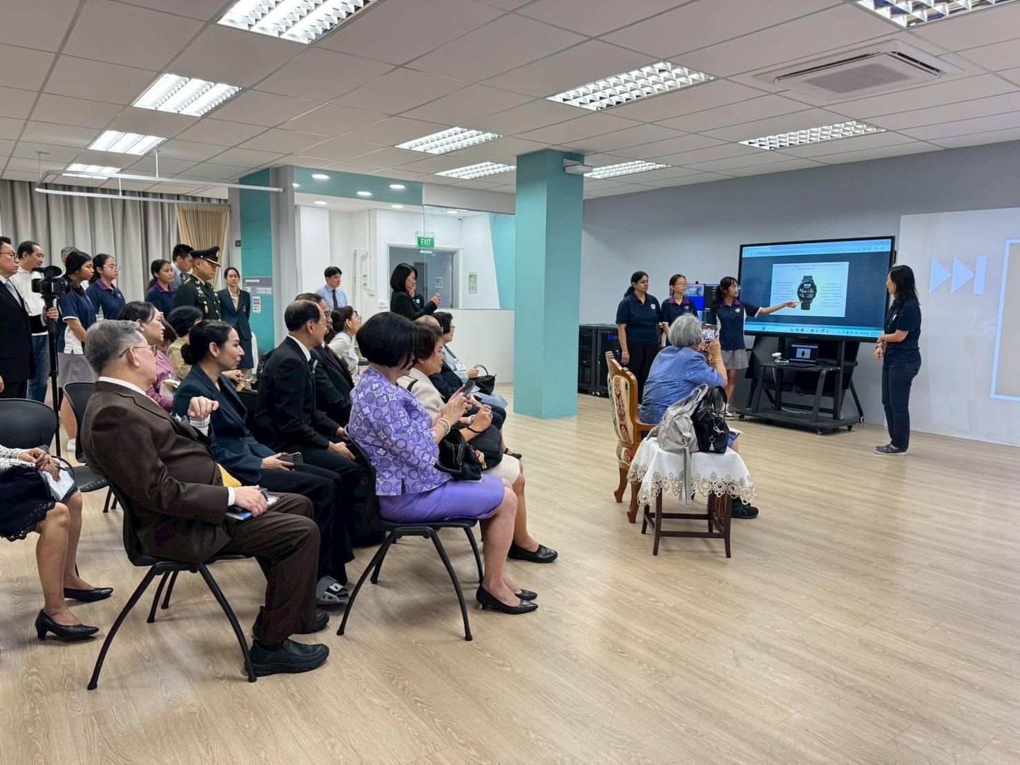 โอกาสนี้ ได้ทอดพระเนตรการเรียนการสอนของโรงเรียน ซึ่งโรงเรียนได้จัดห้องเรียนให้เหมาะสมกับวิชาที่เรียน และเปิดโอกาสให้นักเรียนได้ลงมือปฏิบัติจริง เช่น ร้านไลฟ์ช้อป (Life Shop) ซึ่งส่งเสริมทักษะและความมั่นใจด้านคณิตศาสตร์ของนักเรียนผ่านกิจกรรมที่สร้างสรรค์, ห้องปฏิบัติการสำหรับการเรียนรู้ในการดูแลผู้ป่วยและผู้สูงอายุ Community Care Support (CCS) Workshop ตลอดจนการเรียนการสอนการดูแลผู้ป่วยและผู้สูงอายุภายใต้หลักสูตรใหม่ที่มีชื่อว่า ITE Skills Certificate (ISC)–Community Care Support