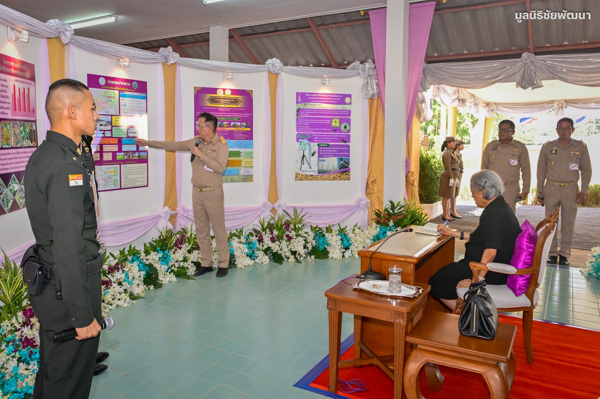 โอกาสนี้ ทรงรับฟังสรุปผลการดำเนินงานในรอบปีที่ผ่านมาจากหน่วยงานที่ร่วมดำเนินกิจกรรมในพื้นที่โรงเรียนนายร้อยพระจุลจอมเกล้า ประกอบด้วย ศูนย์วิจัยข้าวปทุมธานี สำนักงานเกษตรจังหวัดนครนายก กรมชลประทาน กรมวิชาการเกษตร กรมการข้าว กรมพัฒนาที่ดิน กรมประมง รวมถึงกองพันทหารราบและชมรมโครงการตามแนวพระราชดำริฯ โรงเรียนนายร้อยพระจุลจอมเกล้า