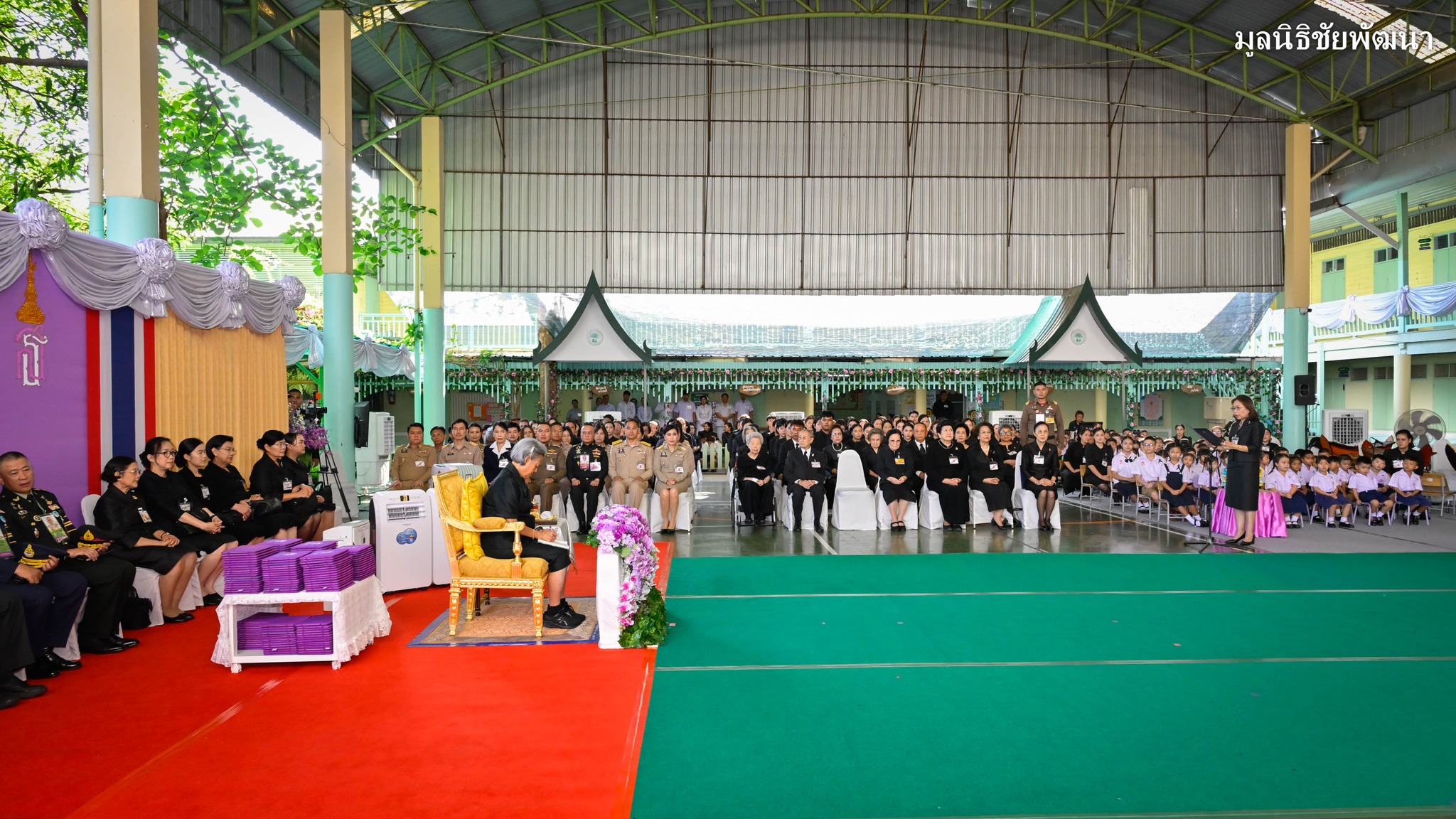 ในการนี้ ได้พระราชทานเกียรติบัตรแก่ครูและนักเรียนที่ได้รับรางวัลต่างๆ จำนวน 142 ราย พร้อมผู้แทนครูและนักเรียนเข้าใหม่เข้าเฝ้าทูลละอองพระบาทถวายตัว จำนวน 278 ราย และผู้แทนนักเรียนชั้นประถมศึกษาปีที่ 6 จำนวน 250 ราย กราบถวายบังคมลา พร้อมกันนี้ ได้ทอดพระเนตรการแสดงของนักเรียน เรื่อง “ท้าวแสนปม” และนิทรรศการผลงานวิชาการของนักเรียนที่ได้รับรางวัล
