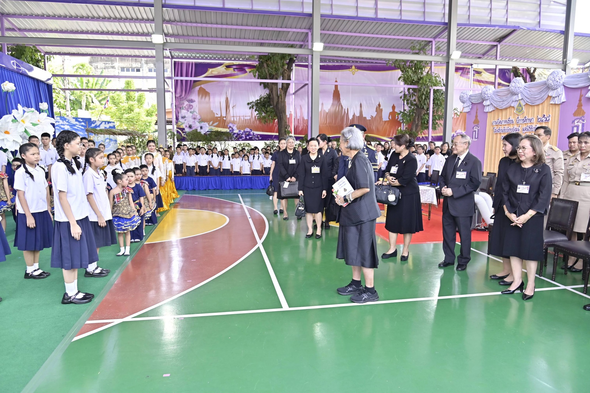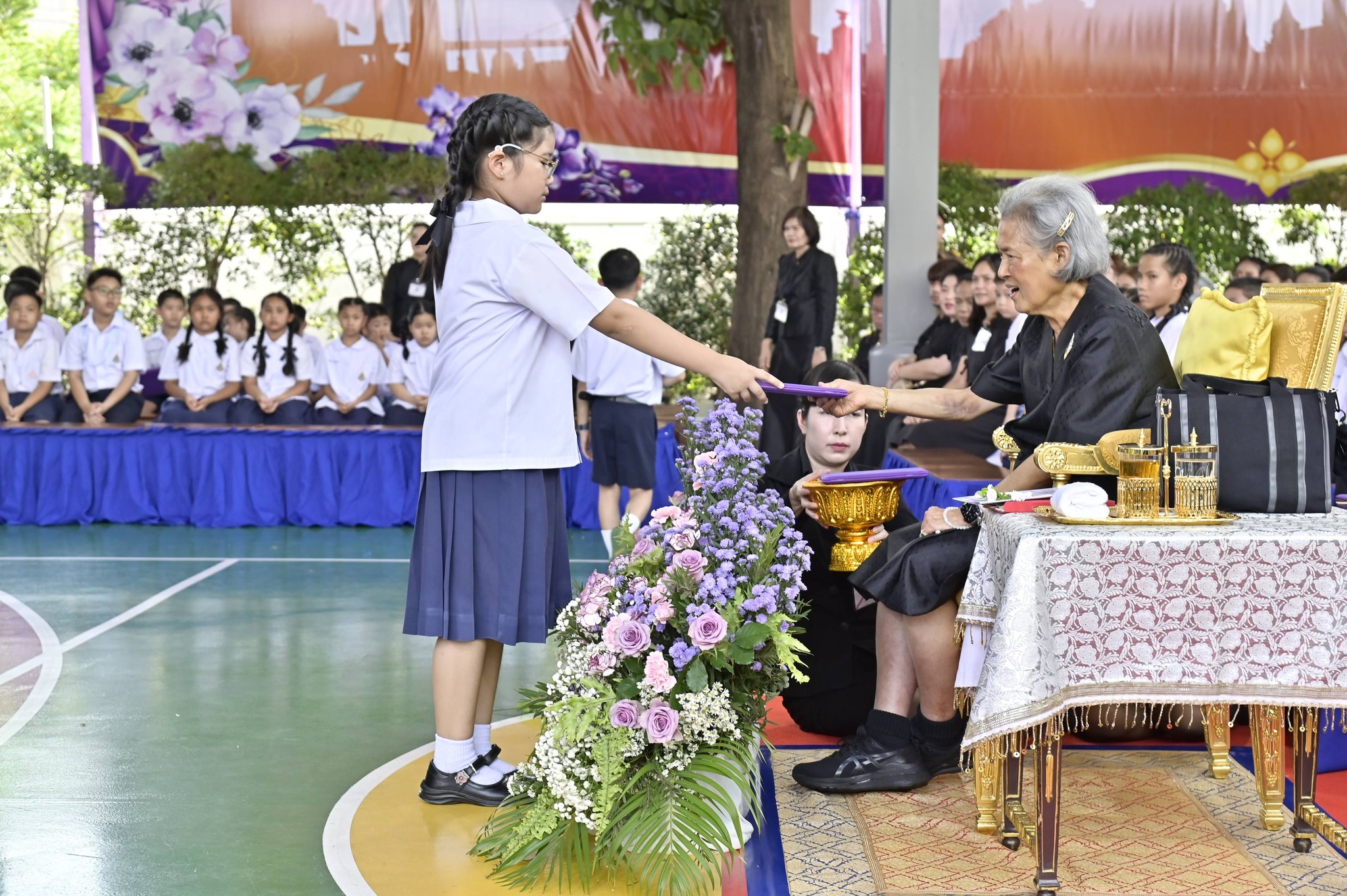 ในการนี้ ได้พระราชทานรางวัลและทุนการศึกษาแก่ครูและนักเรียน รวมจำนวน 48 ราย พร้อมนักเรียนเข้าเฝ้าทูลละอองพระบาทถวายตัวเป็นนักเรียน จำนวน 50 ราย และนักเรียนชั้นประถมศึกษาปีที่ 6 จำนวน 27 ราย กราบถวายบังคมลา
