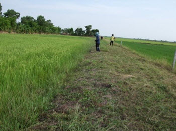 ตัดหญ้าบนคันนาเพื่อไม่ให้เป็นที่หลบซ่อนของหนูนา