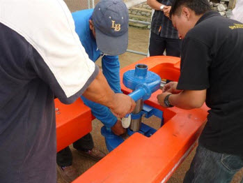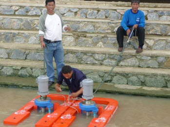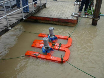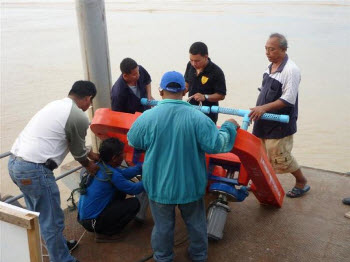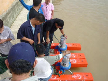 เมื่อ 4 มิ.ย. 54 เจ้าหน้าที่โครงการมูลนิธิชัยพัฒนาและเจ้าหน้าที่กรมชลประทาน ได้ดำเนินการติดตั้งเครื่องกลเติมอากาศแบบอัดอากาศและดูดน้ำ RX-5C