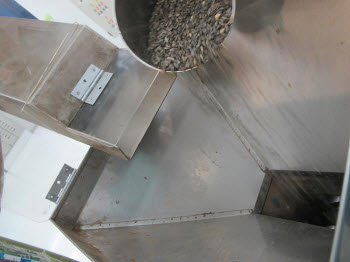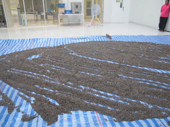 เจ้าหน้าที่ทำการตากเมล็ดทานตะวันเพื่อลดความชื่นก่อนที่จะทำการหีบเมล็ด (23 มิ.ย. 54)