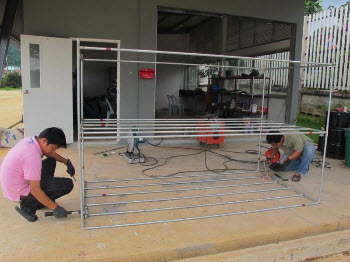 เจ้าหน้าที่ฝ่ายผลิตและช่าง จัดทำโครงเหล็กเอาไว้ใช้สำหรับตากผ้ากรองกาก (17 มิ.ย. 54)