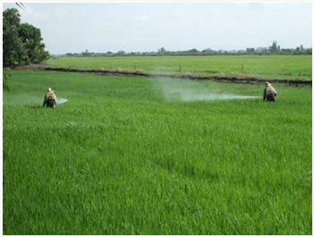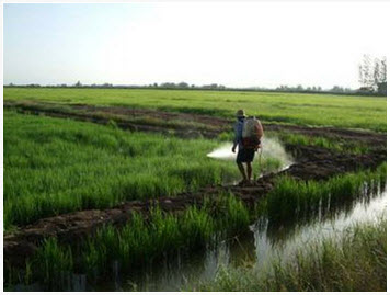 ฉีดพ่นสารกำจัดหนอนในนาข้าวครับ