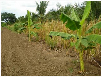 ปลูกกล้วยบริเวณคันดิน รอบนาบัว