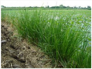 หญ้าแฝกที่ปลูกบริเวณรอบนาบัว