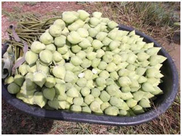 ดอกบัวที่เก็บมาแล้ว เพื่อนำไปมัดเป็นกำ
