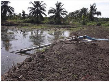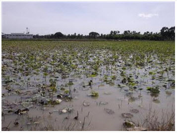 ปริมาณน้ำในนาบัวไม่เพียงพอเนื่องจากท่อปล่อยน้ำอุดตันทำให้นาบัวเสียหายบางส่วน