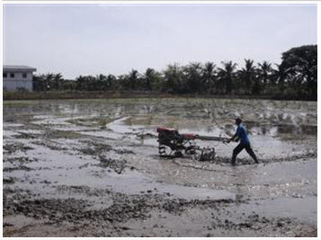 ทำการย่ำนาซ้ำเพื่อทำเทือกนาเตรียมหว่านข้าว