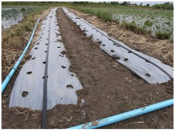 การวางระบบน้ำสปริงเกอร์ โดยได้รับการสนับสนุนจาก ศูนย์วิจัยและพัฒนาการเกษตรราชบุรี