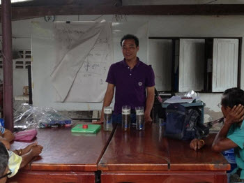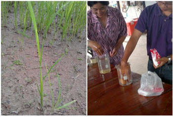เจ้าหน้าที่โครงการแปลงสาธิตการทำนาในที่ดินของมูลนิธิชัยพัฒนา ได้ทำการจัดกิจกรรมโรงเรียนเกษตรกร ในสัปดาห์ที่ ๓ ถ่ายทอดความรู้เรื่องการคัดเเยกเมล็ดพันธุ์ในน้ำเกลือ