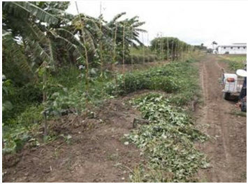 กำจัดวัชพืชบนแปลงผักที่ปลูกบนคันดิน