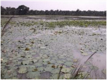นาบัวแปลงที่ 1 ที่ทำการย่ำไป ได้แตกใบและออกดอกใหม่แล้ว และขยายเป็นวงกว้างแล้ว