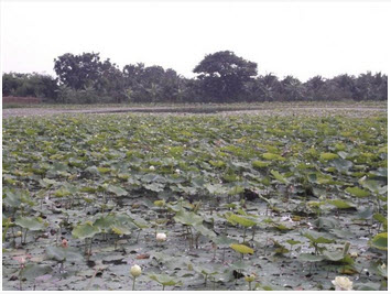 นาบัวแปลงที่ 1 ให้ผลผลิตบ้างแล้วแต่ดอกไม่ใหญ่เนื่องจากสภาพอากาศแปรปรวน