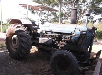 รถไถดินที่ทางศูนย์วิจัยและพัฒนาการเกษตรราชบุรีเอาเข้ามาช่วยเหลือในการทำถนน
