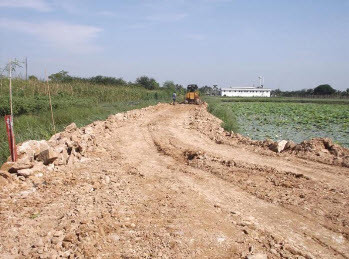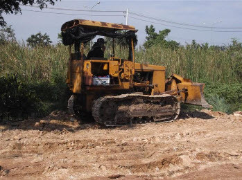 ถมลูกรังทำถนนทางเข้า เพื่อทำการก่อสร้างบ้านพักคนงาน