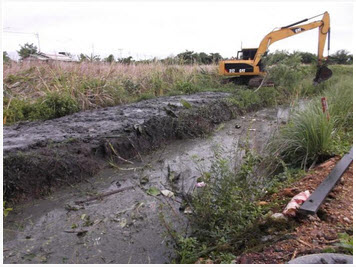 จ้างเหมารถแบ็คโฮมาทำการลอกคูคลองด้านหน้าโครงการฯ และทำการขุดเพื่อฝังท่อน้ำที่จะส่งเข้านาบัวของโครงการฯ