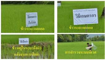 อำเภอเมือง จังหวัดนครนายก เพื่อสำรวจระบบนิเวศและวิเคราะห์สถานการณ์ในแปลงนาสาธิต ข้าวในระยะแตกกอ
