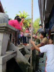 ชาวบ้านที่อาศัยริมน้ำ และนักท่องเที่ยวต่างออกมาร่วมทำบุญกับเรือกฐิน