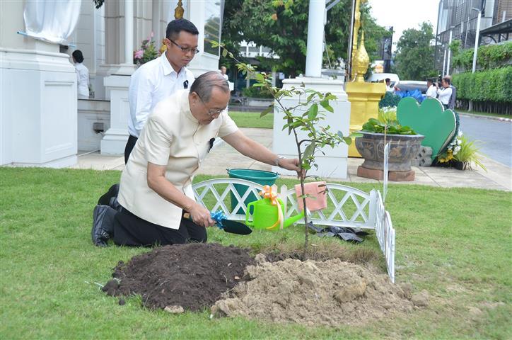 Later, the management team planted Honeycomb tree at the front of the Royal Project building and released fish to Chao Phraya River at Suan Luang Rama 8.