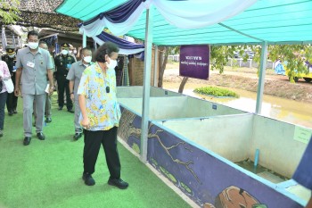 After that, Her Royal Highness also proceeded to Ban Suan Chon Ya of Colonel Chonlob Chamnanphon, Deputy Chief of the 29th Army Region, located at Ban Khok Sawang, That Na Weng Subdistrict, Mueang Sakon Nakhon District, Sakon Nakhon Province. By this, the Colonel Chonrob Chamnanphon, who is interested in agriculture, used to be responsible for supervising and directing the Thaharn Phandee Project (The Good Farmer Soldiers) of the 3rd Infantry Regiment and the Thaharn Phandee Project (The Good Farmer Soldiers) of the 29th Army District. Once he had completed the military service, he brought back the knowledge and experience gained from the Project to do his own gardening with an aim to set up a learning center for students and people in the vicinity.