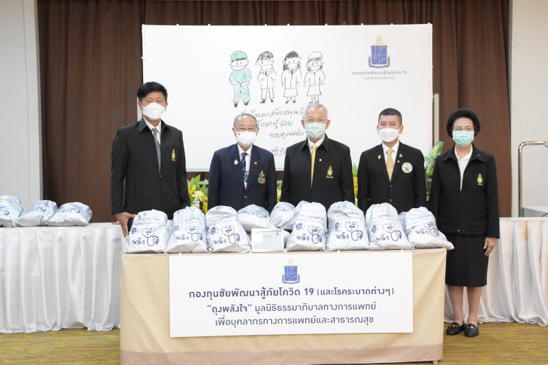 The Foundation for Good Governance on Medicine and students in Certificate Course of the Foundation for Good Governance on Medicine for senior executive class 8 and 9 joined hand to create “Happy Bag”, containing the dry food and essential supplies. These bags will be thereafter presented to medical personnel who are quarantined and those who perform duties in field hospitals, for example Busarakham Field Hospital in Bangkok, Ministry of Public Health Field Hospital in Samut Sakhon, Chiang Mai, Saraburi, Phetchaburi, etc. The 2,000 bags were presented to Her Royal Highness Princess Maha Chakri Sirindhorn through “Chaipattana Covid-19 Aid Fund (and Other Pandemics)”.