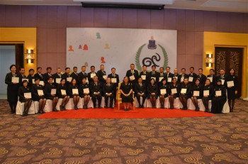 ลำดับต่อมา เลขาธิการมูลนิธิชัยพัฒนา กราบบังคมทูลเบิกผู้สำเร็จหลักสูตรฯ เข้ารับพระราชทานวุฒิบัตร จานวน 36 ราย และได้เบิกผู้ให้การสนับสนุนการฝึกอบรมฯ เข้ารับพระราชทานของที่ระลึก จำนวนทั้งสิ้น 18 รายจากนั้น สมเด็จพระเทพรัตนราชสุดาฯ สยามบรมราชกุมารี พระราชทานพระราโชวาทแก่ผู้สำเร็จหลักสูตรฯ คณะเจ้าหน้าที่ และผู้มีส่วนร่วมในการดำเนินการจัดทำหลักสูตรผู้นำการพัฒนาอย่างยั่งยืน รุ่นที่ 1 หลักสูตรผู้นำการพัฒนาอย่างยั่งยืน เป็นการสนองพระราชดำริ สมเด็จพระเทพรัตนราชสุดาฯ สยามบรมราชกุมารี ซึ่งได้พระราชทานพระราชกระแสให้สำนักงานมูลนิธิชัยพัฒนา พิจารณาจัดทำโครงการอบรมหลักสูตรผู้นำของมูลนิธิชัยพัฒนา เพื่อสร้างเครือข่ายผู้นำในการพัฒนาชุมชนอย่างยั่งยืน โดยมีวัตถุประสงค์เพื่อสร้างผู้นำด้านต่างๆ ให้เพียบพร้อมทั้งคุณธรรม จริยธรรม มีความสามารถ มีความรับผิดชอบต่อสังคมและสิ่งแวดล้อม เป็นผู้นำการเปลี่ยนแปลงไปสู่การพัฒนาสังคมอย่างยั่งยืน และนำมาซึ่งเครือข่ายแห่งการทำความดี โดยได้น้อมนำหลักการทรงงานของพระบาทสมเด็จพระปรมินทรมหาภูมิพลอดุลยเดช “เข้าใจ เข้าถึง พัฒนา” เป็นกรอบในการจัดทำหลักสูตร