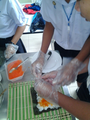 นักเรียนช่วยกันทำชูชิสุดฝีมือ