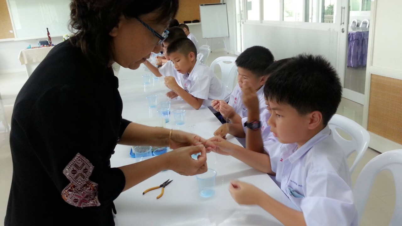 นักเรียนเข้าฟังความเป็นมาของมูลนิชัยพัฒนาและวิทยากรตั้งใจสอนและผู้เข้ารับการอบรมตั้งใจปฏิบัติเป็นอย่างมาก