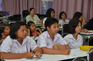นางภากมล รัตตเสรี ผู้ช่วยเหรัญญิกสำนักงานมูลนิธิชัยพัฒนา กล่าวแนะนำแนวปฏิบัติตามหลักการของมูลนิธิชัยพัฒนาแก่เด็กนักเรียนโรงเรียนคุระบุรีชัยพัฒนาพิทยาคม อำเภอคุระบุรี จังหวัดพังงา ในโครงการหลักสูตรพัฒนาอาชีพด้านการท่องเที่ยว โดยความร่วมมือระหว่างมูลนิธิชัยพัฒนา และมหาวิทยาลัยสงขลานครินทร์