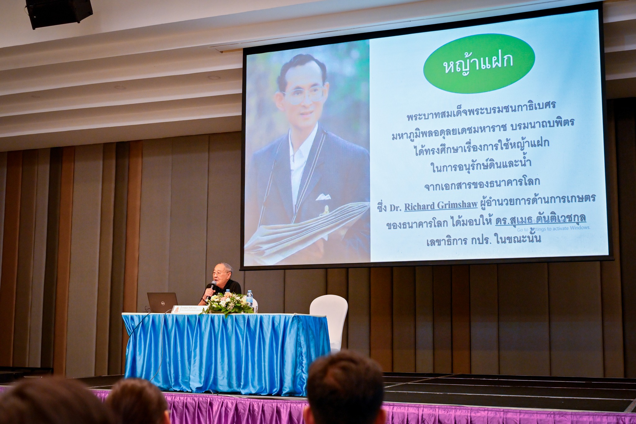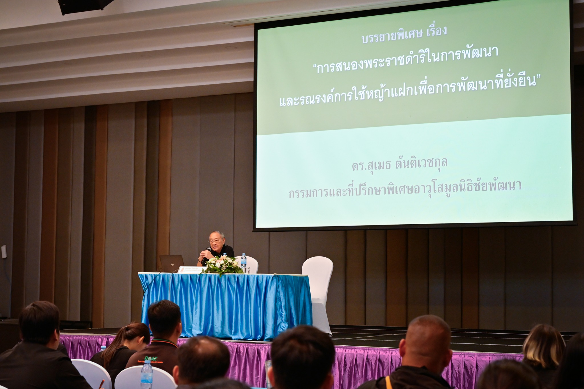 นายสุเมธ ตันติเวชกุล กรรมการและที่ปรึกษาพิเศษอาวุโสมูลนิธิชัยพัฒนา เป็นวิทยากรบรรยายพิเศษหัวข้อ “การสนองพระราชดำริในการพัฒนาและรณรงค์การใช้หญ้าแฝกเพื่อการพัฒนาที่ยั่งยืน” ในโครงการฝึกอบรม “ครูหญ้าแฝก” รุ่นที่ 3