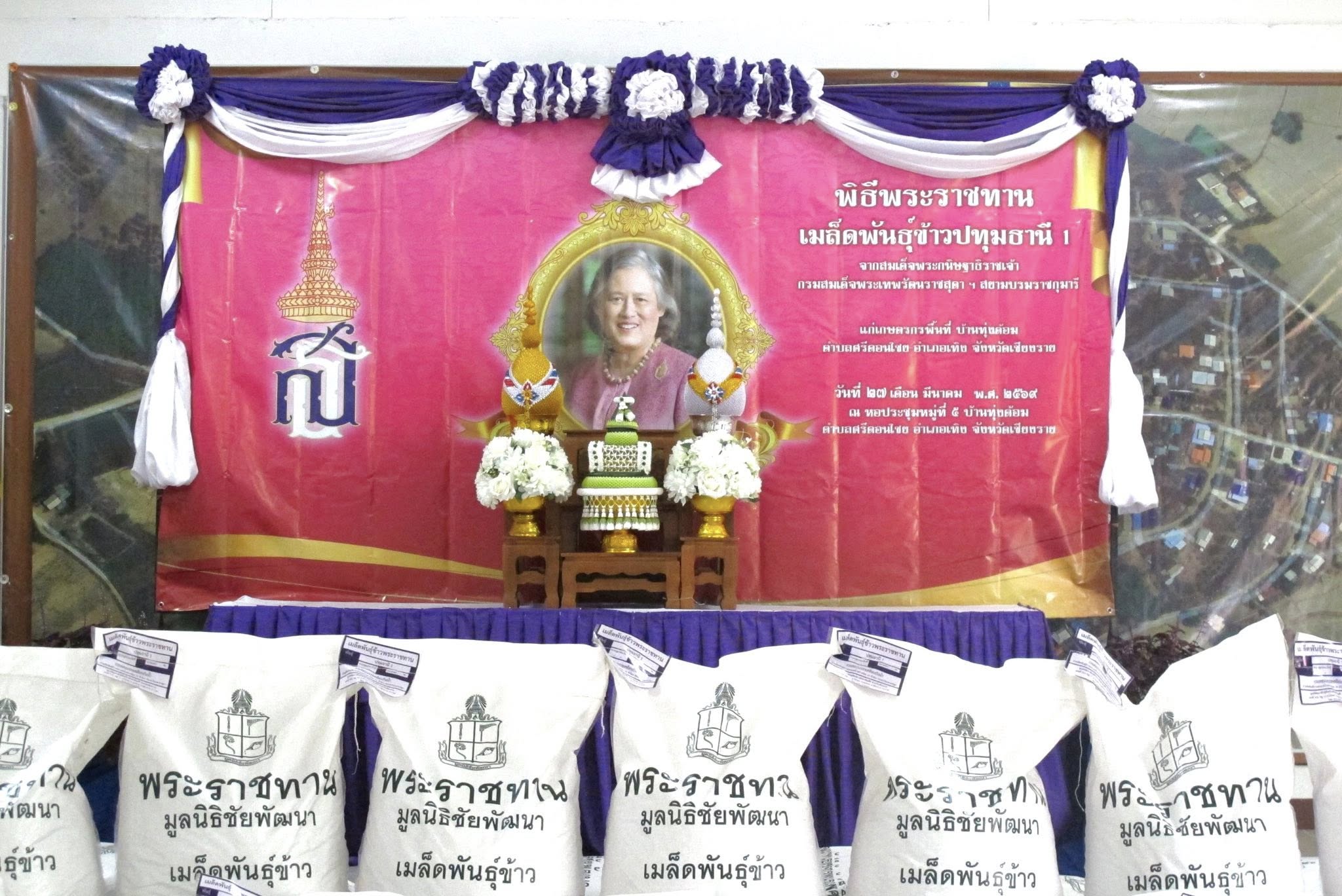 ในวันนี้ได้พระราชทานเมล็ดพันธุ์ข้าวปทุมธานี 1 จำนวน 9,195 กิโลกรัม แก่เกษตรกรและราษฎรบ้านทุ่งต้อม จำนวน 41 ราย 1 หมู่บ้าน ในตำบลศรีดอนไชย อำเภอเทิง จังหวัดเชียงราย ซึ่งประสบปัญหาอุทกภัย ครอบคลุมพื้นที่เสียหาย 613 ไร่