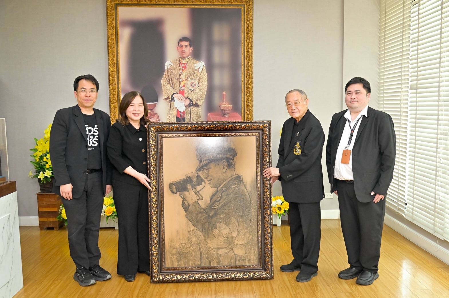 วันที่ 25 มีนาคม 2569 นางสาวสุนทรียา วงศ์ศิริกุล รองกรรมการผู้อำนวยการใหญ่ สายงานการเงิน บริษัท อสมท จำกัด (มหาชน) ได้มอบภาพผลงานศิลปะชื่อ “เลนส์แห่งธรรม นำทางแผ่นดิน” โดยศิลปิน “อาจารย์ดินหิน รักพงษ์อโศก” แก่นายสุเมธ ตันติเวชกุล กรรมการและที่ปรึกษาพิเศษอาวุโสมูลนิธิชัยพัฒนา เพื่อใช้ในกิจกรรมของมูลนิธิฯ ณ สำนักงานมูลนิธิชัยพัฒนา กรุงเทพมหานคร