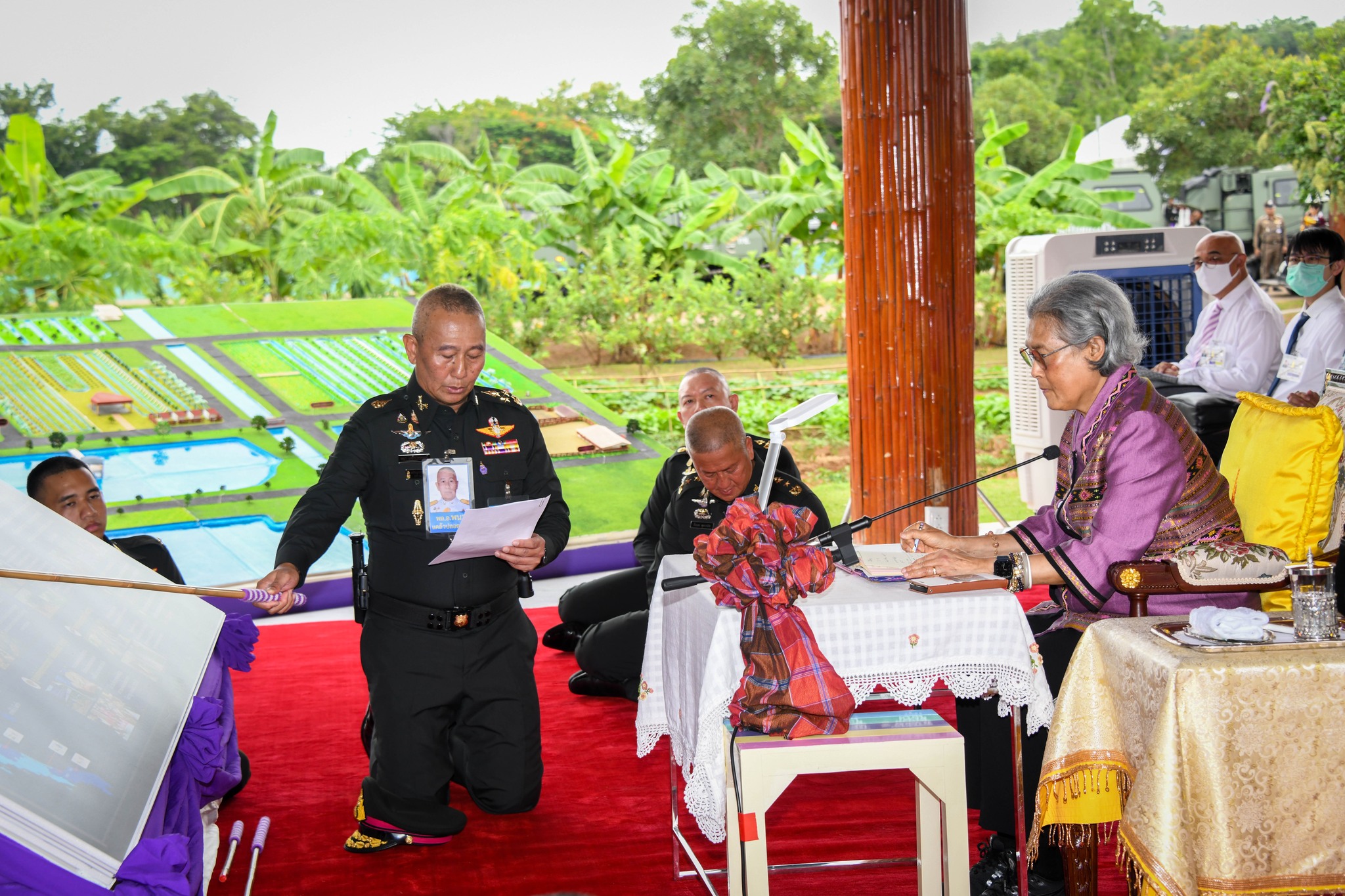 ในการนี้ พลเอก พนา แคล้วปลอดทุกข์ ผู้บัญชาการทหารบก กราบบังคมทูลรายงานการดำเนินโครงการทหารพันธุ์ดีของกองทัพบก เพื่อช่วยเหลือราษฎรตามพระราชดำริฯ