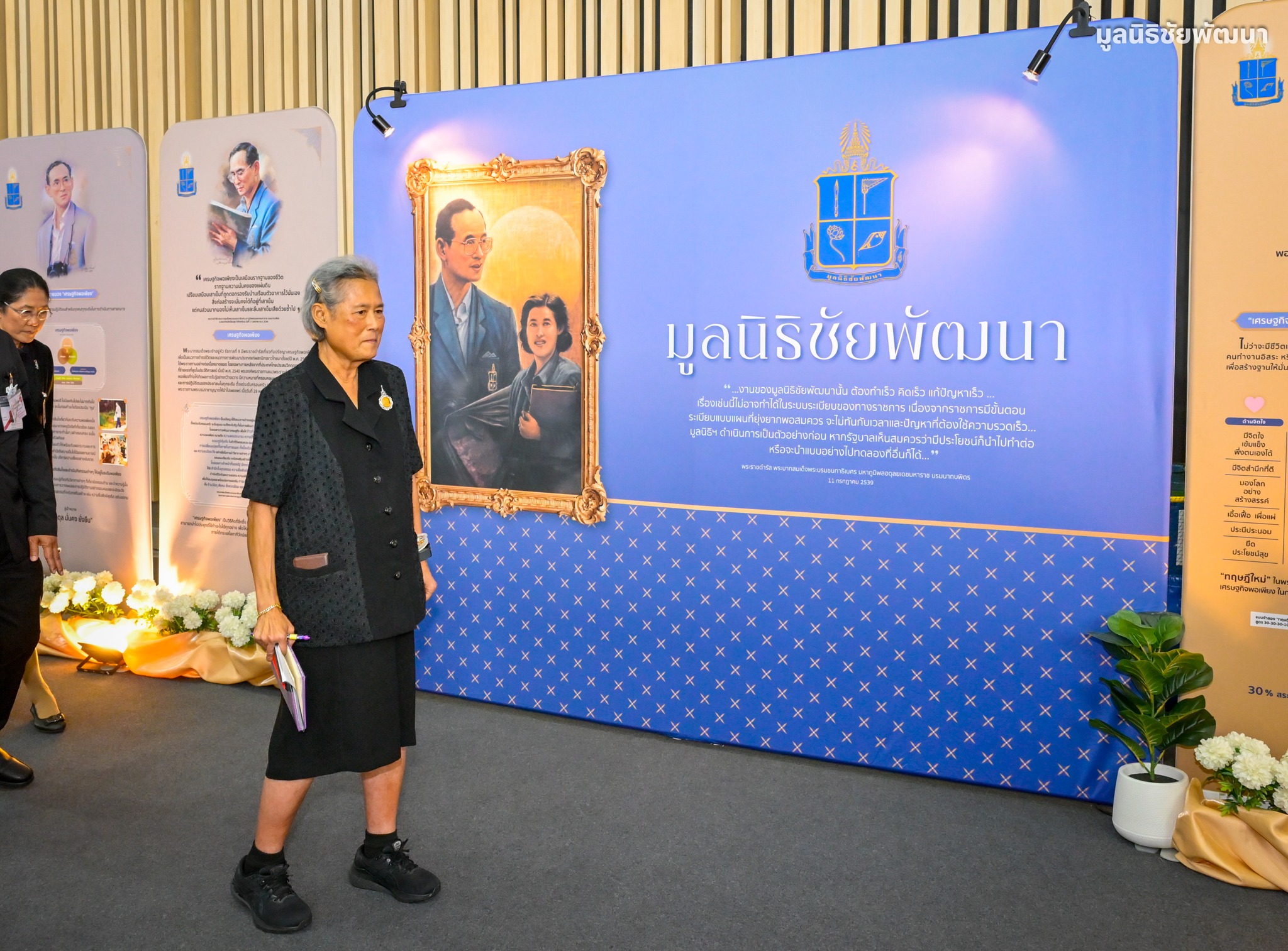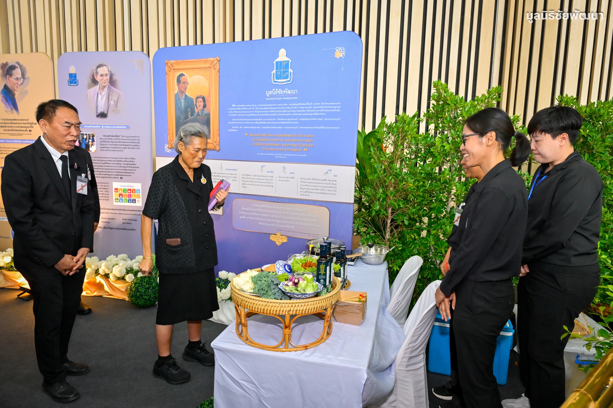 โอกาสนี้ได้ทอดพระเนตรนิทรรศการและบูทจำหน่ายผลิตภัณฑ์ของมูลนิธิชัยพัฒนา ประกอบด้วย