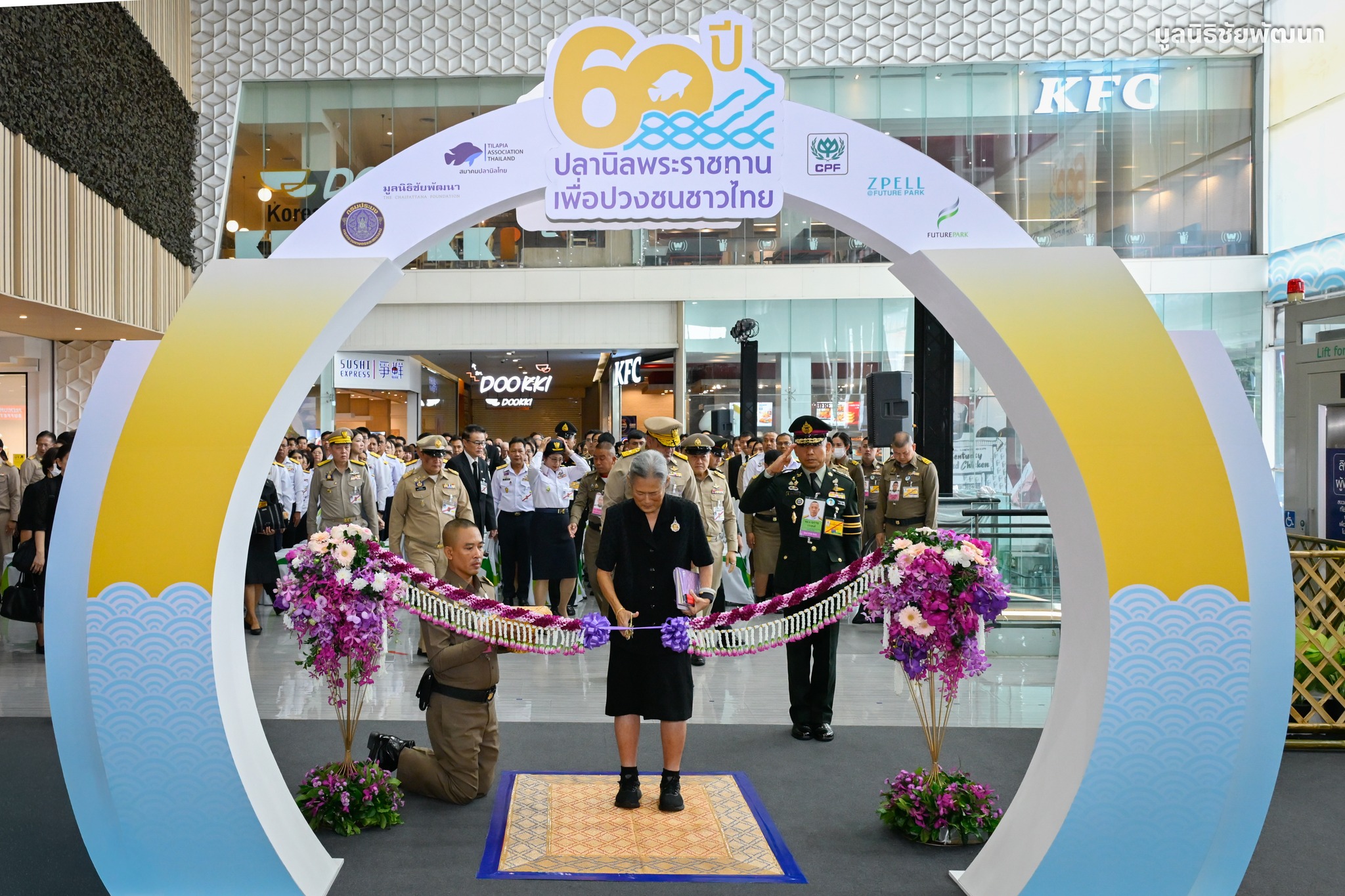 วันที่ 13 มีนาคม 2569 สมเด็จพระกนิษฐาธิราชเจ้า กรมสมเด็จพระเทพรัตนราชสุดา ฯ สยามบรมราชกุมารี เสด็จพระราชดำเนินไปทรงเป็นองค์ประธานในพิธีเปิดงาน “60 ปี ปลานิลพระราชทานเพื่อปวงชนชาวไทย” โดยมีนายสุเมธ ตันติเวชกุล กรรมการและที่ปรึกษาพิเศษอาวุโสมูลนิธิชัยพัฒนา พร้อมด้วยผู้บริหารมูลนิธิฯ เฝ้าฯ รับเสด็จ ณ ศูนย์การค้าฟิวเจอร์พาร์คและสเปลล์ จังหวัดปทุมธานี