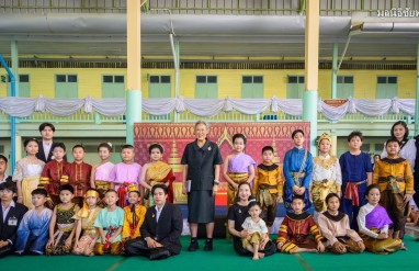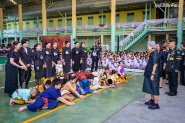 ในการนี้ ได้พระราชทานเกียรติบัตรแก่ครูและนักเรียนที่ได้รับรางวัลต่างๆ จำนวน 142 ราย พร้อมผู้แทนครูและนักเรียนเข้าใหม่เข้าเฝ้าทูลละอองพระบาทถวายตัว จำนวน 278 ราย และผู้แทนนักเรียนชั้นประถมศึกษาปีที่ 6 จำนวน 250 ราย กราบถวายบังคมลา พร้อมกันนี้ ได้ทอดพระเนตรการแสดงของนักเรียน เรื่อง “ท้าวแสนปม” และนิทรรศการผลงานวิชาการของนักเรียนที่ได้รับรางวัล