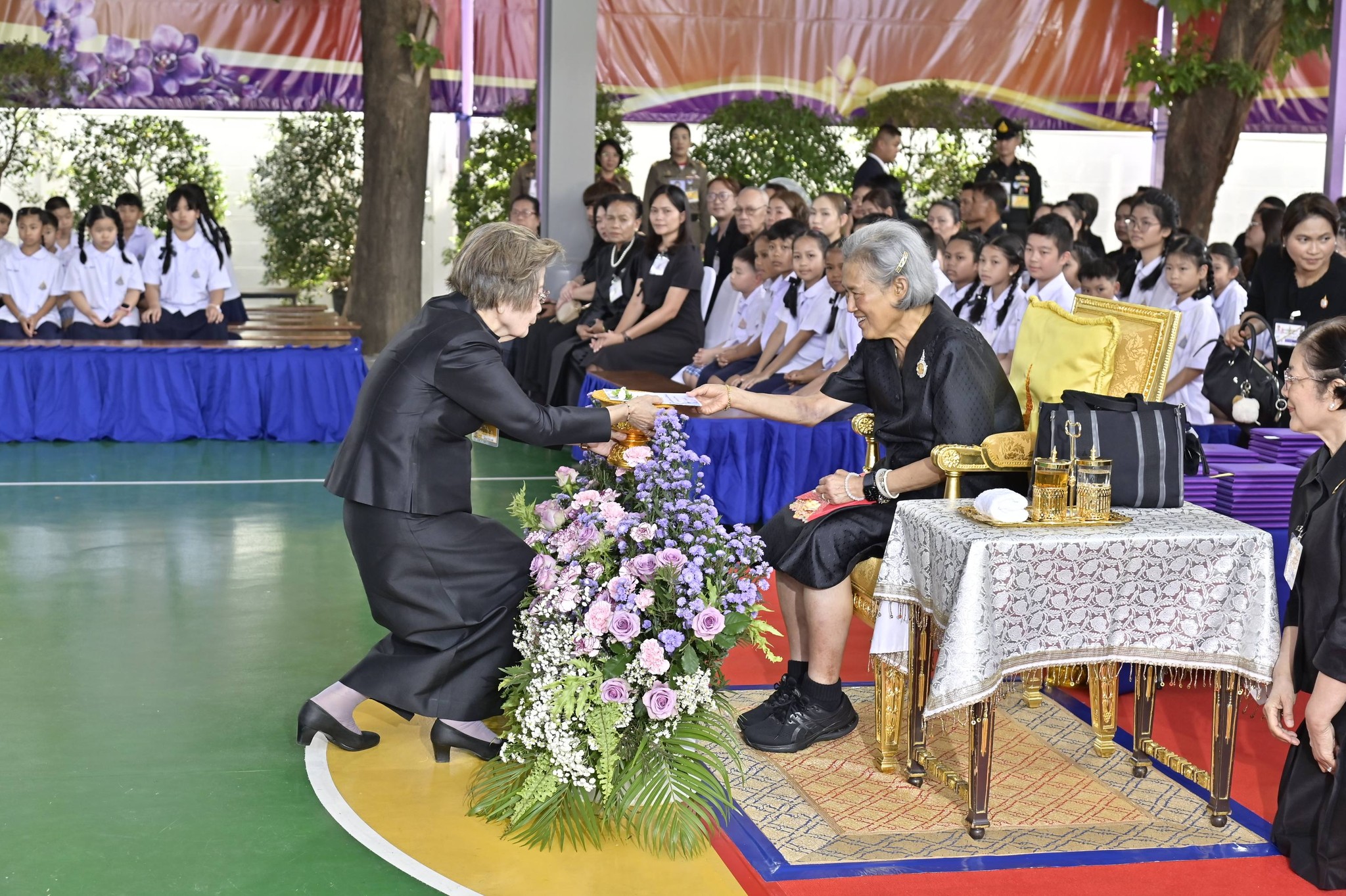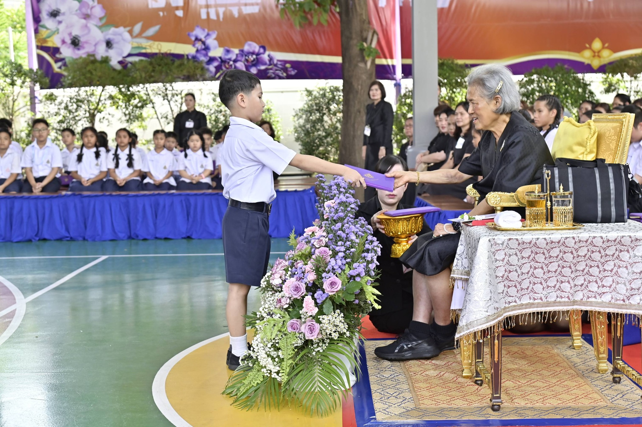 ในการนี้ ได้พระราชทานรางวัลและทุนการศึกษาแก่ครูและนักเรียน รวมจำนวน 48 ราย พร้อมนักเรียนเข้าเฝ้าทูลละอองพระบาทถวายตัวเป็นนักเรียน จำนวน 50 ราย และนักเรียนชั้นประถมศึกษาปีที่ 6 จำนวน 27 ราย กราบถวายบังคมลา