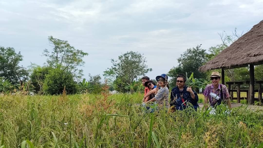 ชมนิทรรศการเคลื่อนที่ (อุปกรณ์การทำการเกษตร) และชมวิธีการเกี่ยวข้าว เดินชมบรรยากาศภายในโครงการ พร้อมทั้งรับประทานอาหาร ณ ร้านกาแฟควายคะนอง