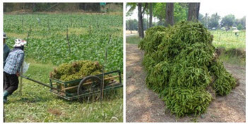 ชั่งน้ำหนักถั่วเหลืองฝักสดพร้อมทั้งมัดกำและตัดรากถั่วเหลืองฝักสดในแปลงทฤษฎีใหม่ครับ