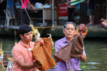 เมื่อวันที่ 25 พฤศจิกายน 2566 โครงการอัมพวา ชัยพัฒนานุรักษ์ จ.สมุทรสงคราม กิจกรรมศูนย์ท่องเที่ยวและเจ้าหน้าที่โครงการ ได้จัดกิจกรรมลอยกระทงกาบกล้วยและประเพณีทอดผ้าป่าเลไลยก์ โดยได้รับความร่วมมือจากชาวชุมชนอัมพวา ศิษย์เก่าอัมพวันวิทยาลัยรุ่น 2509 โครงการสมุทรสงครามอยู่ดี ชมรมศิลปวัฒนธรรมชุมชนอัมพวา บ้านดนตรีไทย และหน่วยงานอื่นๆร่วมกันสืบสานประเพณีการทอดผ้าป่าทางน้ำ ซึ่งภายในงานมีกิจกรรมการแสดงศิลปวัฒนธรรมไทย เช่น การแสดงหุ่นกระบอกกลางน้ำ การแสดงนาฏศิลป์และโขน การแสดงดนตรีไทย เพื่อเป็นการอนุรักษ์ศิลปวัฒนธรรมและสร้างความรื่นเริงให้กับพ่อแม่พี่น้องชาวอัมพวา นักท่องเที่ยว ที่มาร่วมงานและร่วมทำบุญอีกด้วย