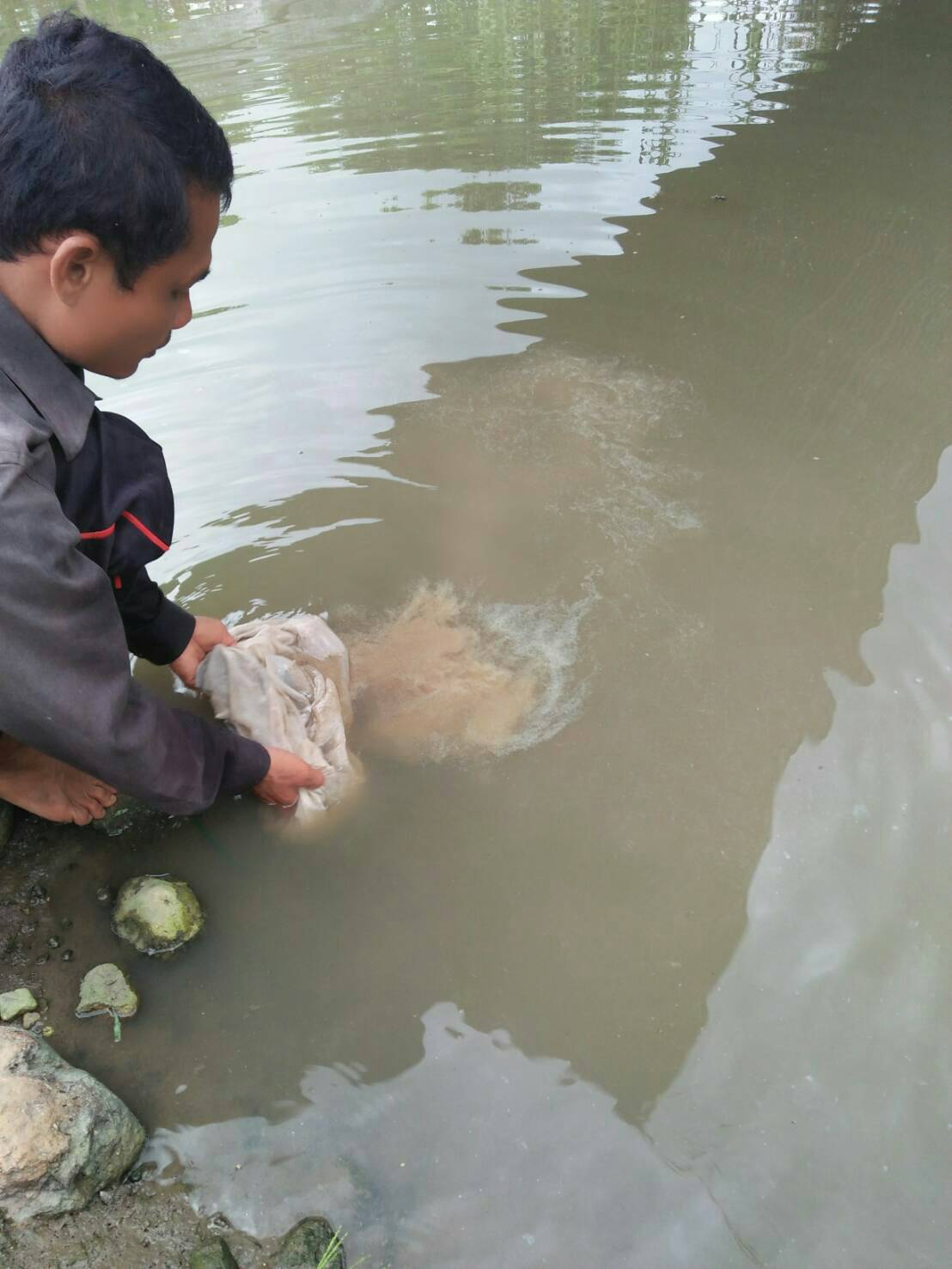 ลงในบ่อดินที่ 1 เพื่อเพาะฟักลูกปลาหมอ ณ โครงการพัฒนาที่ดินมูลนิธิชัยพัฒนา บ้านบางขอม จ.นครนายก