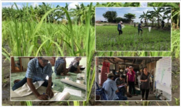 วันพฤหัสบดีที่ 20 กันยายน 2561 เจ้าหน้าที่โครงการแปลงสาธิตการทำนาในที่ดินของมูลนิธิชัยพัฒนา จัดกิจกรรม ถ่ายทอดความรู้ตามกระบวนการโรงเรียนเกษตรกร โดยปฏิบัติตามหลัก GAP Seed ที่บ้านตะพังโคลน ตำบลลาดบัวหลวง อำเภอลาดบัวหลวง จังหวัดพระนครศรีอยุธยา ฤดูกาลที่ 2/2561 เรื่อง การกำจัดพันธุ์ปนและวัชพืช ระยะแตกกอ (หลังปักดำ) ปัจจุบันข้าวอายุ 38 วัน