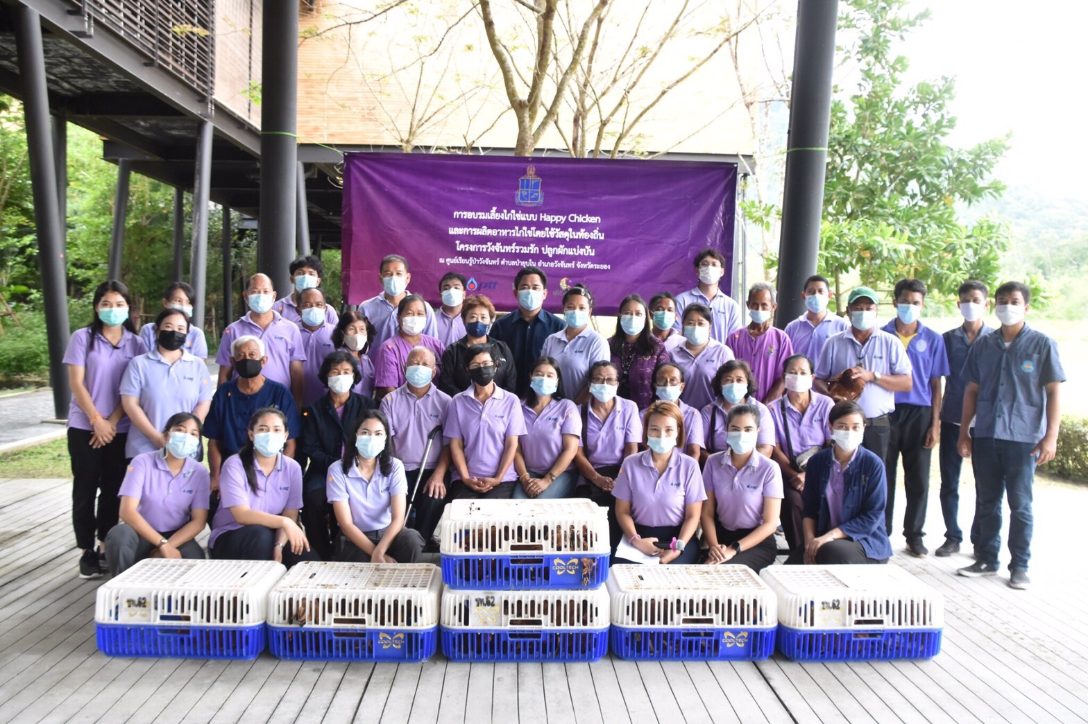 เจ้าหน้าที่โครงการศูนย์พัฒนาพันธุ์สัตว์พระราชทานด่านซ้าย จ.เลย ส่งมอบไก่ไข่พระราชทาน จำนวน 270 ตัว แก่ศูนย์เรียนรู้ป่าวังจันทร์ ต.ป่ายุบใน อ.วังจันทร์ จ.ระยอง