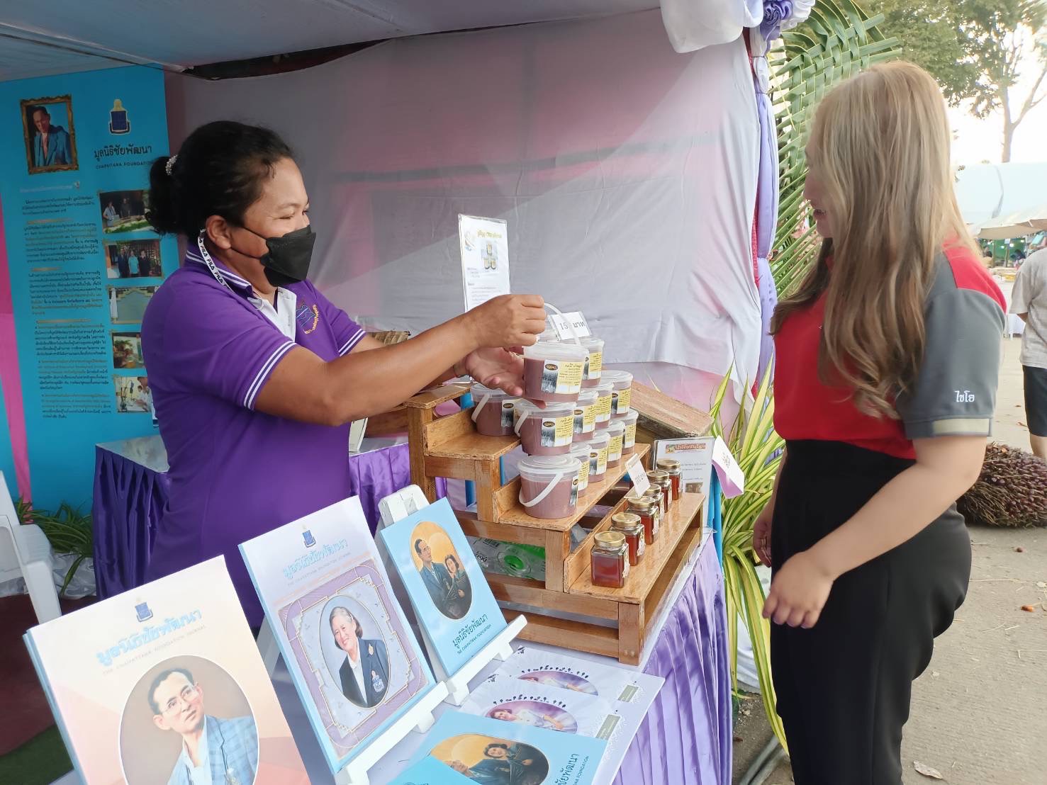 ผลิตภัณฑ์ โครงการของมูลนิธิชัยพัฒนาในพื้นที่อำเภอคุระบุรี จังหวัดพังงา และผลิตภัณฑ์ของชาวบ้านในพื้นที่โครงการฯ ร่วมจำหน่าย