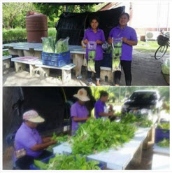 พนักงานโครงการชัยพัฒนา-กาชาดไทยบ้านทุ่งรัก ซึ่งเป็นชาวมอแกนช่วยกันเก็บผักไฮโดรโปนิกส์มาล้างแล้วแพ็คออกจำหน่ายวันนี้มีผักกว้างตุ้ง ผักคะน้า ค่ะ