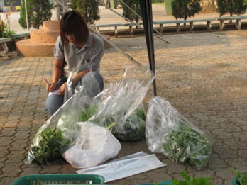 ผัก จำนวน 1 กิโลกรัม บรรจุใส่ถุงพร้อมชื่อเจ้าของผัก รอส่งเข้าห้องวิเคราะห์หาสารตกค้าง